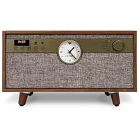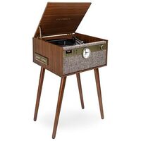 Stereo-Lautsprecher, Plattenspieler 33/45/78 U/min., CD-Player, Kassette, Bluetooth, Aux, Analoguhr, Standfüsse