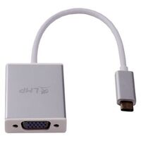 VGA adapter cable, connections: USB-C connector > VGA jack (mini D-sub) • 15 cm • color: silver, features: 2048x1152, compatible with Thunderbolt 3 port