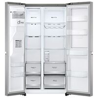 fridge/freezer, freestanding, total capacity: 635 L • energy label: E • 131 kg • NoFrost, Side-by-Side, silver, icemaker/water dispenser/app-controlled